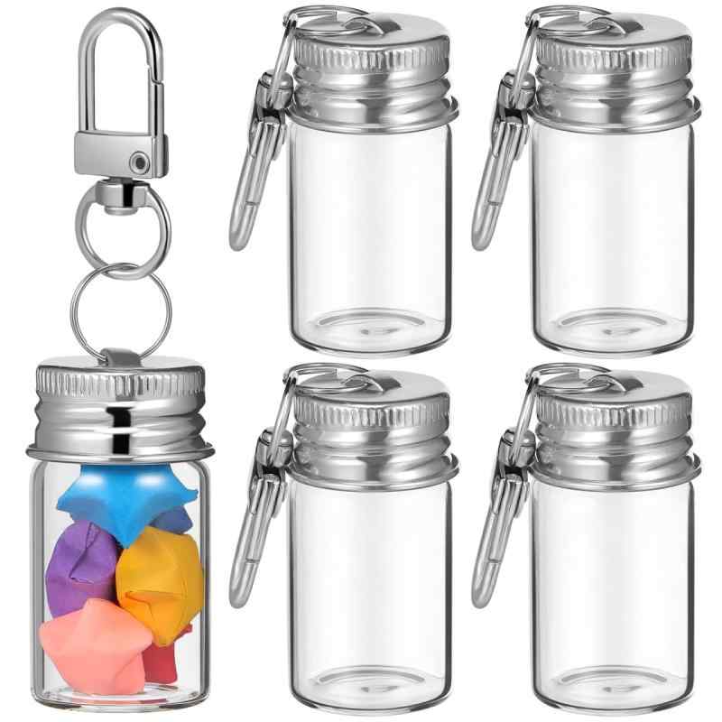 Abaodamキーチェーンボトルミニガラスバイアル願い事ボトルキーホルダー透明5個4x2x2cm約7ml香水オーナメントレジン封入メッセージ漂流瓶クリエイティブ収納DIYクラフトアクセサリー
