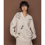 ニット セーター メッセージ刺繍Vネックニットプルオーバー「手洗い可能」 レディース