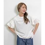tシャツ メッセージプリント フリル袖 Tシャツ レディース