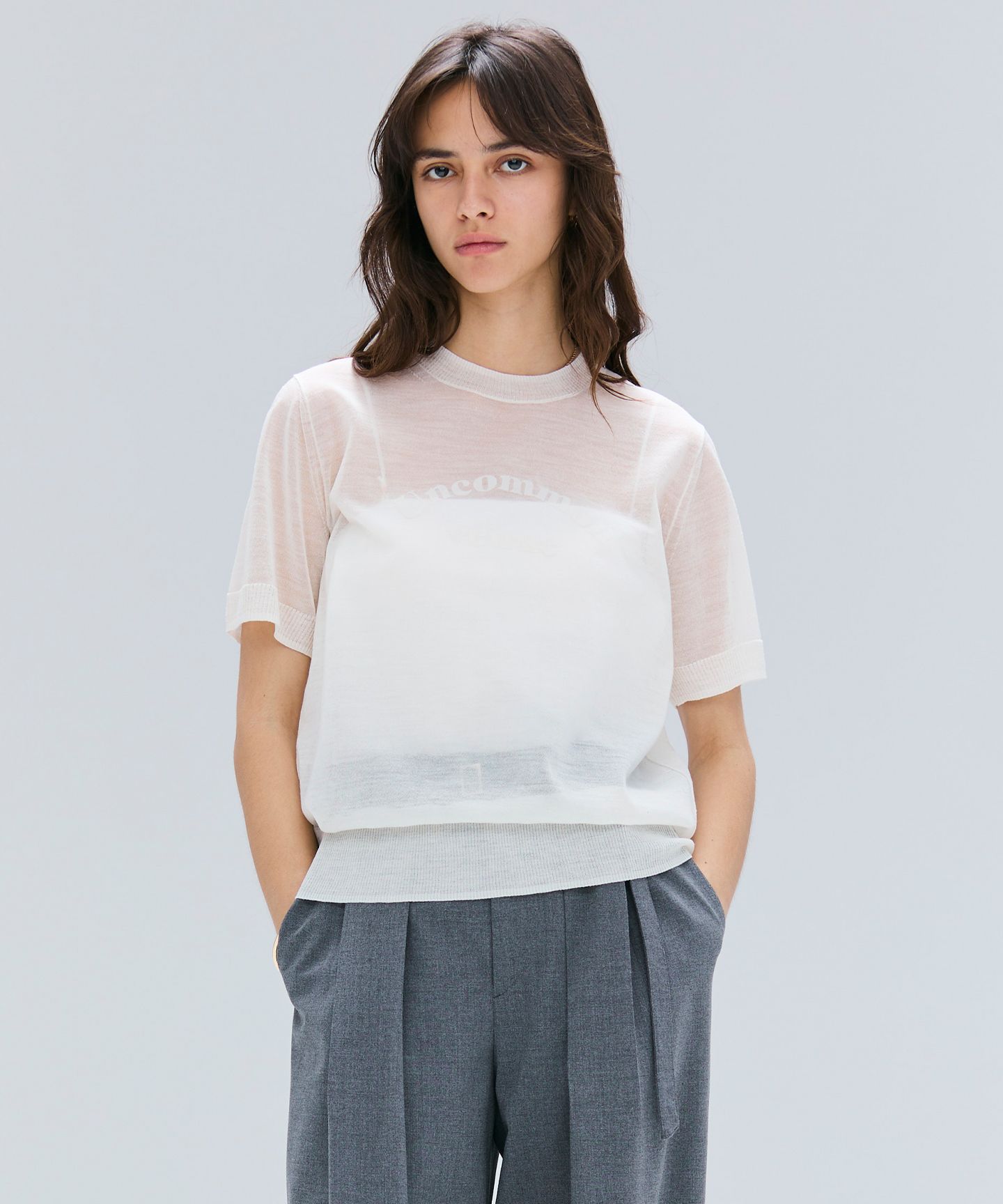 BEIGE,(ベイジ)/【洗える・GLOW 10月号掲載】CADDO / シアーウールメッセージロゴTニット