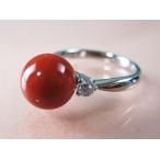 血赤珊瑚 指輪 ぷちダイヤモンド付プラチナのリング (のし等ギフト対応無料) 8.5mm玉 高知県産血赤珊瑚 無染色さんご 10号(8-14号は無料サイズ直し)