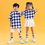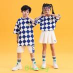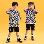 格子縞 夏 半袖 HIPHOP メッセージロゴ ストリートダンス キッズダンス 2点セット コットン tシャツ ショーツ