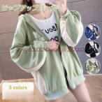 ジップアップパーカー レディース トレーナー 長袖 パフスリーブ メッセージ柄 トップス 前開き カジュアル 着痩せ 春秋 可愛い おしゃれ