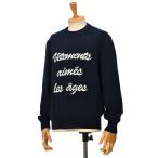 秋冬 lucien pellat-finet カシミヤ100% クルーネックニット ROM5754 メッセージ インターシャ セーター メンズ ルシアンペラフィネ