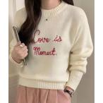 ニット セーター メッセージ 刺繍 ニット プルオーバー レディース