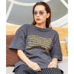 tシャツ 英字ロゴ入りシンプルメッセージプリントTシャツ レディース