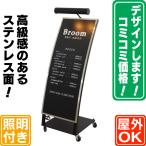看板面加工込みステンレスカーブスタンド看板(照明付き) おしゃれ 屋外用 立て看板 スタンド デザイン 店舗 片面 メッセージボード ステンレス