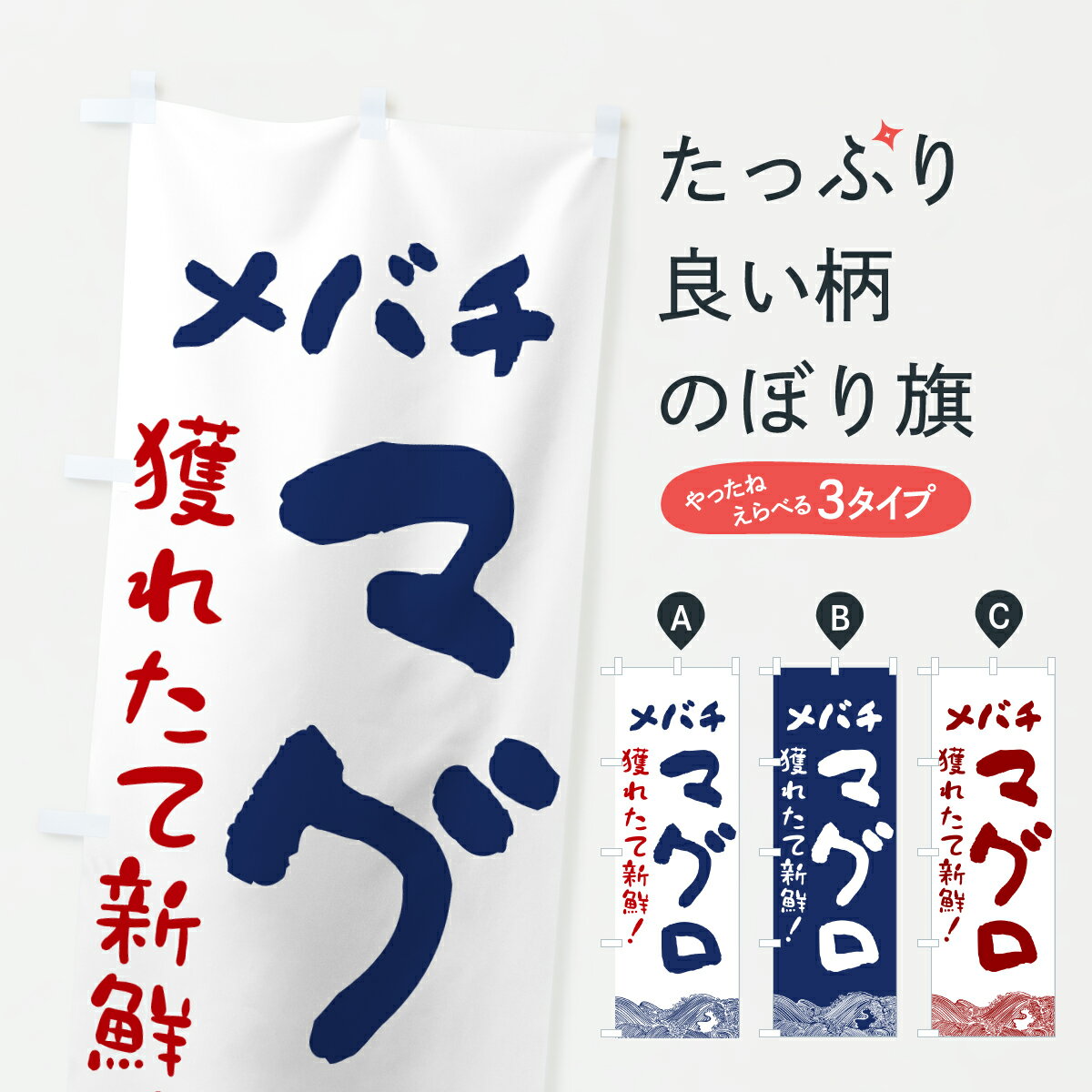 【ネコポス送料360】 のぼり旗 メバチマグロ・鮮魚のぼり 34F5 魚介名 グッズプロ 【名入れできます+1017円】