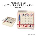 カレンダー 2026 卓上 オビワン スクリブルカレンダー NK4290 ペン付き メモ帳型 卓上 ミニカレンダー持ち歩き 2026年版 かわいい レトロ イラスト 258271