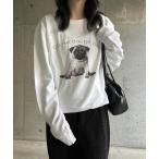 トレーナー スウェット 「軽量」パグプリントスウェット トレーナー レディース