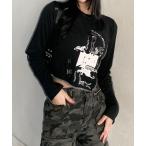 tシャツ プリント アウトリンキング 変形アシメロンT レディース