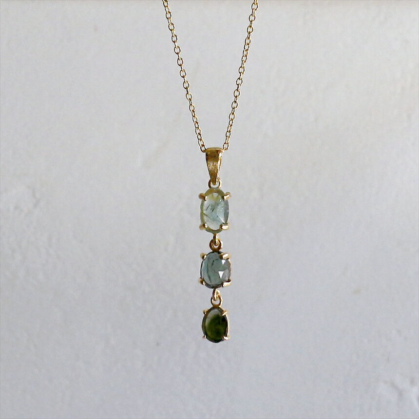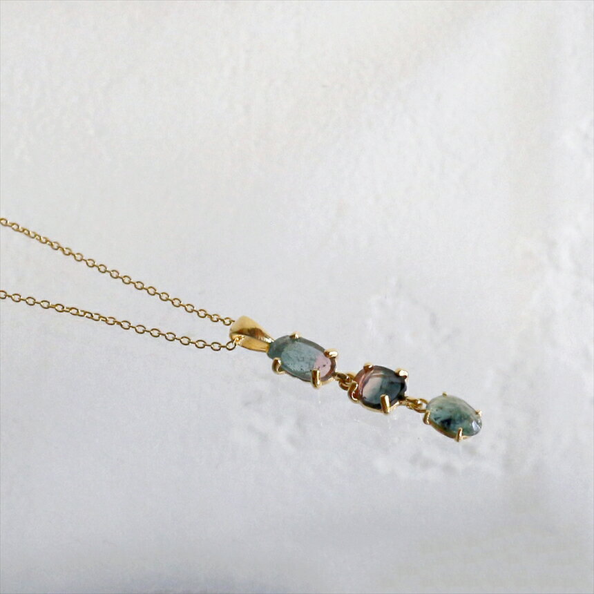 【10%OFFクーポン対象】3っつのウォーターメロントルマリンのネックレス 18KGF 天然石 バイカラー