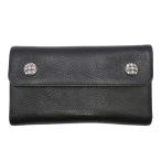 【天白】クロムハーツ ウェーブ ウォレット WAVE 長財布 ブラック SV925 レザー タガーチャーム クロスボタン メンズ 財布