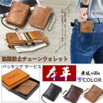 財布 二つ折り財布 メンズ ウォレット 磁気防止 本革 レザー 大容量RFID識別 ロブスタークラスプ チェーン付き 盗難防止 父の日 ギフトプレゼント