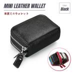 ミニウォレット カードケース ミニ財布 ダブルファスナー ジャバラ 小銭入れ コインケース 本革 メンズ レディース ブラック