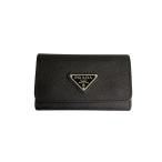 【未使用保管品】 プラダ PRADA サフィアーノ メタル レザー 4連 キーケース キーリング メンズ レディース 黒 【中古】