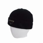 プラダ PRADA トライアングルロゴ ウール カシミヤ ビーニー ニット帽 帽子 M ブラック 黒 UMD489 S211 3IM 国内正規 メンズ