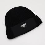PRADA プラダ ニット帽 ウール ビーニー 1HC390 2DZL メンズ NERO ブラック バージンウール カシミヤ 帽子 トライアングルロゴ 秋冬 ロゴ