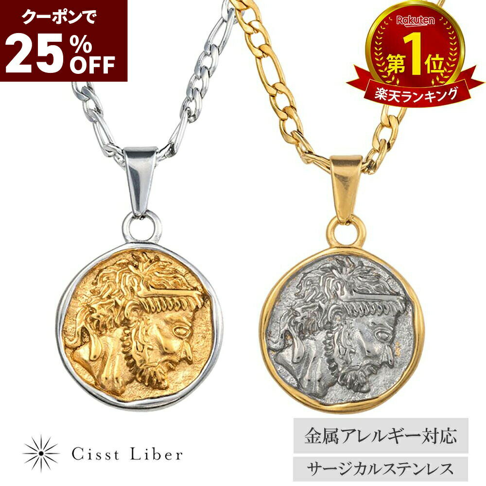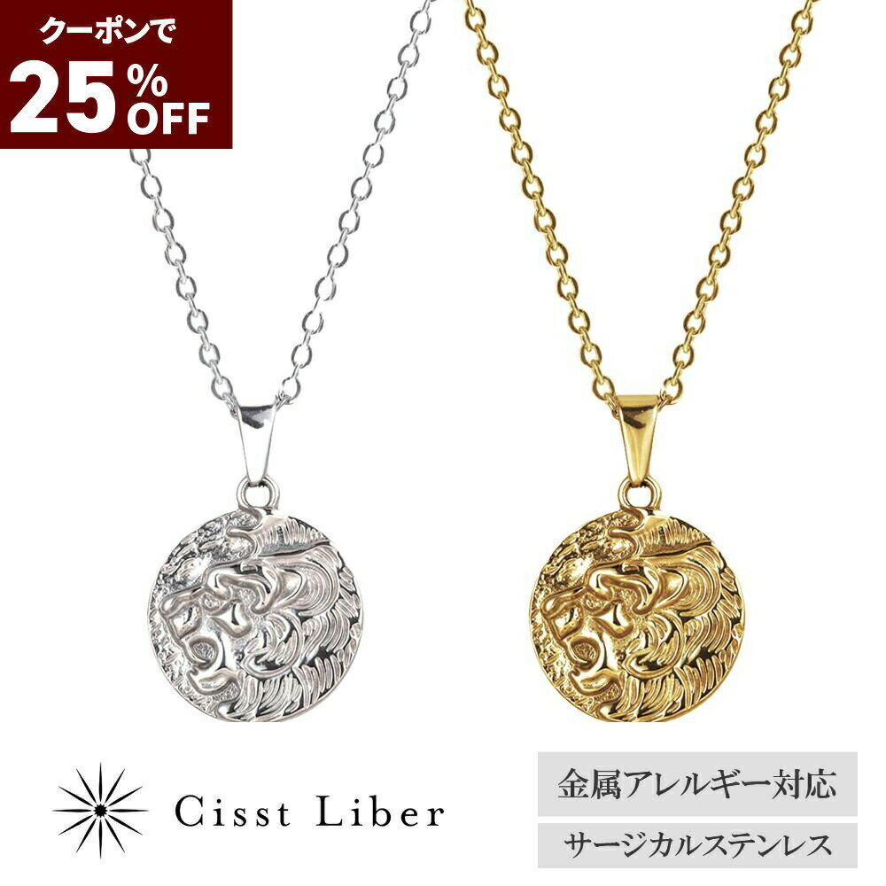 クーポンで3,435円_25%OFF【P5倍マラソン】【Cisst Liber】 コイン ネックレス メダル ライオン 獅子 メンズ 金属 アレルギー対応 サージカル ステンレス シルバー ゴールド 金色 金 45cm 50cm
