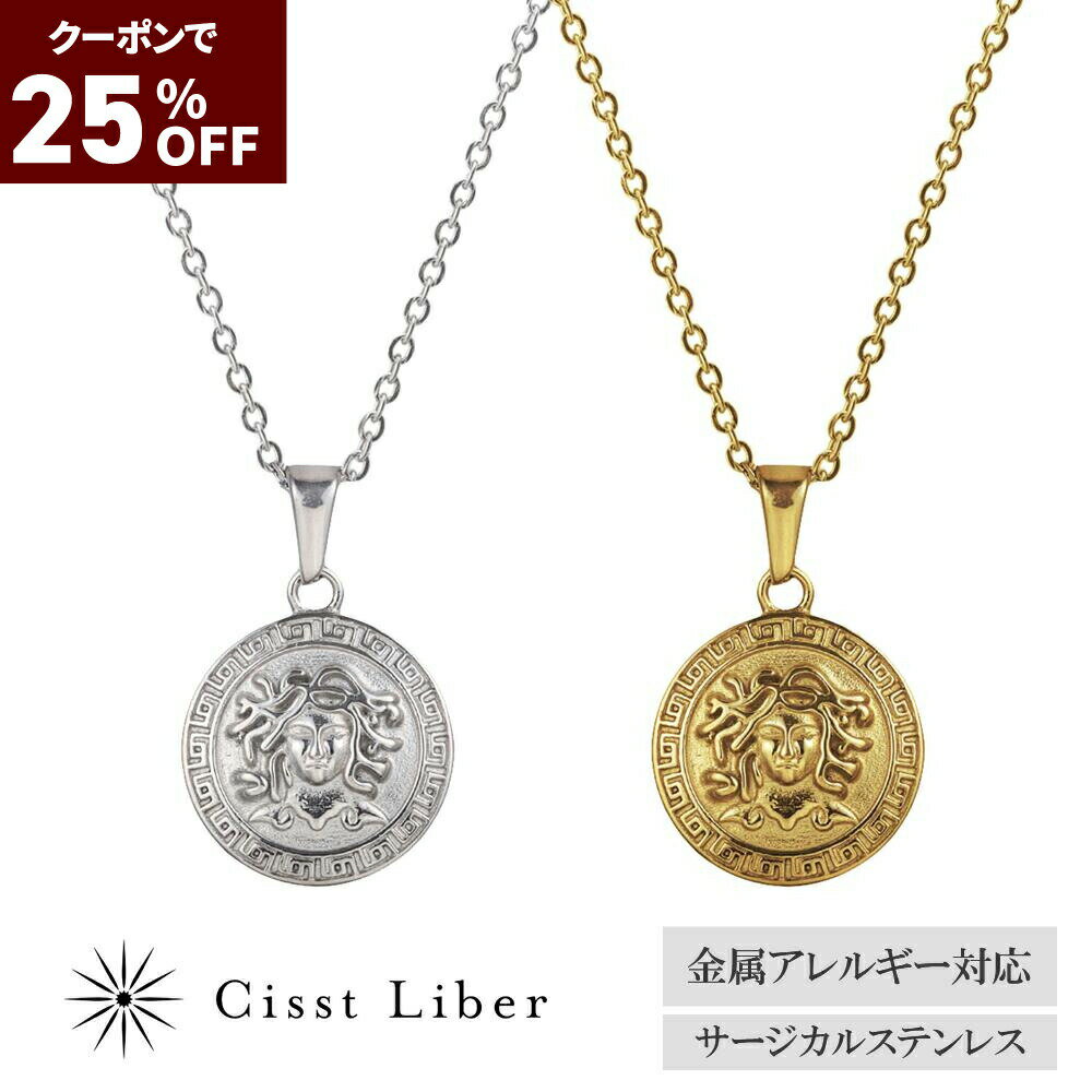 クーポンで3,435円_25%OFF【P5倍マラソン】【Cisst Liber】 コイン ネックレス メダル メデューサ メンズ 金属 アレルギー対応 サージカル ステンレス シルバー ゴールド 金色 金 45cm 50cm