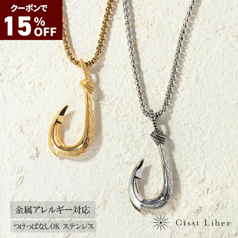 クーポンで3,893円15%OFF【P5倍マラソン】【Cisst Liber】ハワイアンジュエリー ネックレス メンズ 釣り針 フィッシュフック ブランド 錆びない つけっぱなし チェーン ステンレス ステンレス 大きい シルバー ゴールド 60cm