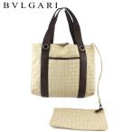 【30%OFFセール】ブルガリ トートバッグ トート ハンドバッグ レディース メンズ コローレ 内側ポーチ付き ロゴマニア ベージュ ブラウン シルバー 中古