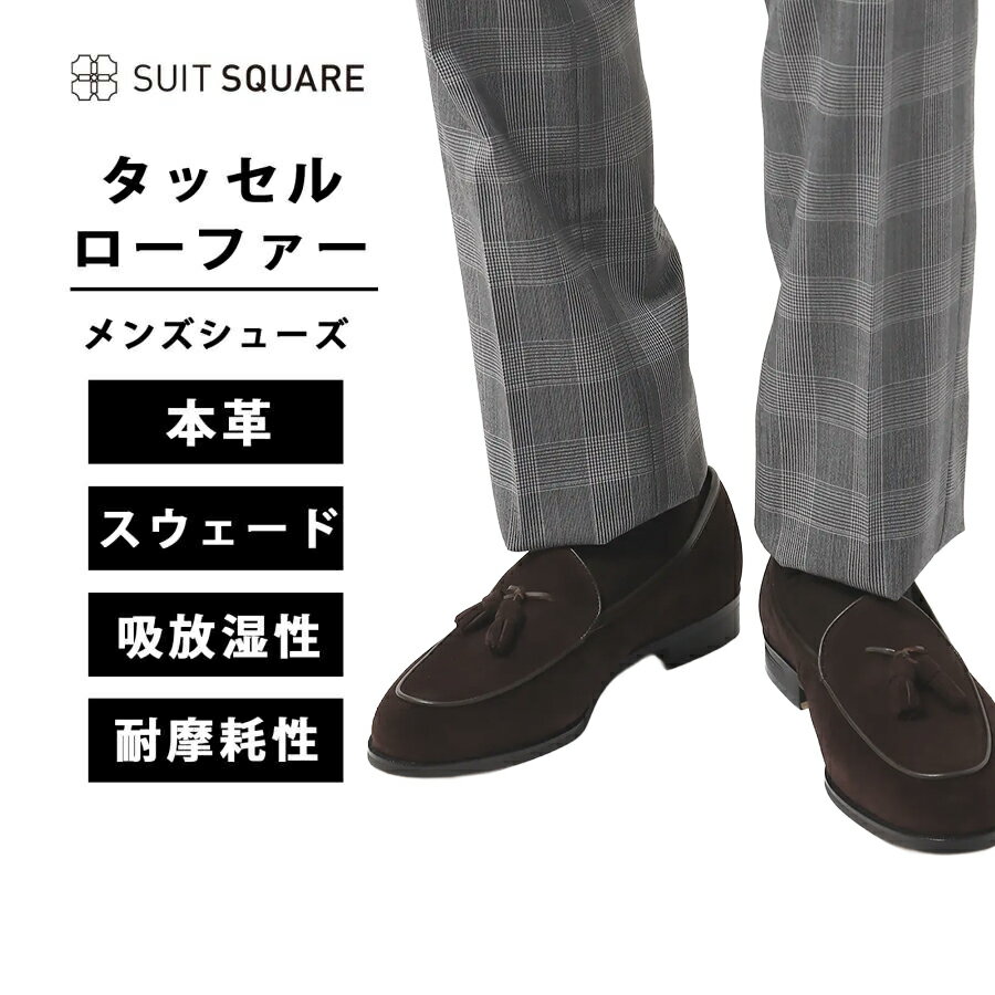 タッセルローファー ローファー メンズ 紳士靴 革靴 靴 スウェード ブラウン 茶色 ビジネスシューズ オールシーズン 通年 スリッポン 豚革 3E Uチップ ヒール 24.5cm 25.0cm 25.5cm 26.0cm 26.5cm 27.0cm ビジネス フォーマル オフィス カジュアル スーツスクエア