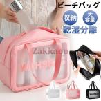 ビーチバッグ クリアバッグ レディース トートバッグ PU プール 収納バッグ コンパクト 乾湿分離 海水浴 大容量 水泳 手提げ 化粧品 ジム 旅行