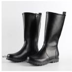 ロングブーツ レディース ラウンドトゥ ローヒール バックジッパー ウエスタンブーツ ロング丈 PU 合皮 おしゃれ きれいめ 履きやすい 歩きやすい 美脚 黒