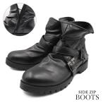 メンズ ブーツ 歩きやすい 厚底 サイドジッパー 滑らない 黒 ベルト 安い エンジニア ペコス ロック
