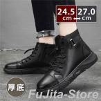 ブーツ メンズ 裏起毛 カジュアルシューズ ハイカット 英字 ビジネス 厚底 無地 通学 通勤 春 秋 冬 ブラック ワーク 快適