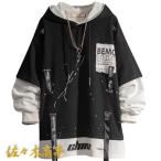 パーカー 重ね着 メンズ 春秋服 ベルト飾り かっこいい ベルト 原宿風 オリジナル フード付き カジュアル スウェット ファッション