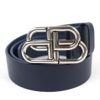 極美品△BALENCIAGA バレンシアガ 570370 BBロゴメタルバックル レザー ベルト ネイビー シルバー金具 85 箱・保存袋付き 伊製 メンズ