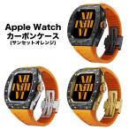 アップルウォッチ apple watch カーボン ケース カバー バンド ラバー 高級ベルト ケースバンド ベルト 44mm 45mm メンズ 男性用 腕時計 [サンセットオレンジ]