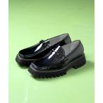 ローファー 「コイン/ビット」選べるブラックチャンキーローファーシリーズ メンズ レディース