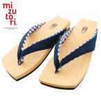 下駄 メンズ「みずとりの下駄 茶人 SA-08-L ツートン/紺×市松青」男性 日本製 足が痛くなりにくい(メール便不可)<H>