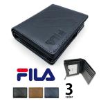 財布 メンズ 二つ折り 革 FILA フィラ パスケース付き ドットロゴ型押し ショートウォレット