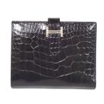 エルメス 二つ折り財布 ベアンコンパクト アリゲーターシャイニー A刻印 ブラック シルバー金具 メンズ【質みなみ・長尾店】【質屋】 HERMES 【中古】 NA14121