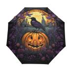【並行輸入品】 KAAVIYO ハロウィン パンプキン パープル 鳥 傘 防風 自動折りたたみ傘 自動開閉 メンズ レディース キッズ KAAVI