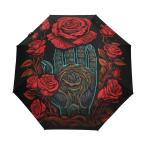 【並行輸入品】 KAAVIYO 怖いゴールデンスカルローズ傘 防風 自動折りたたみ傘 自動開閉 メンズ レディース キッズ KAAVIYO Sca