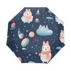 【並行輸入品】 KAAVIYO カートゥーン ロケット 水彩画アート 傘 防風 自動折りたたみ傘 自動開閉 メンズ レディース キッズ KAAVI
