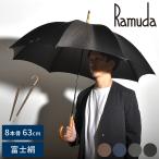 Ramuda メンズ 傘 スリム 富士絹 8本骨 63cm 鉄木持ち手 UV加工 細巻き 高級 雨傘 ビジネス 大人 通勤 【リボンラッピング無料対象商品】