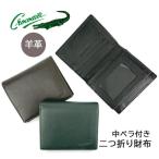 財布 二つ折り財布 定期入れ メンズ ブランド 6cm053 クロコダイル 中ベラ付き 羊革 革 レザー 人気 黒 茶 緑 Crocodile ビッグロゴ3