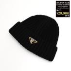 PRADA プラダ ニット帽 ウール ビーニー 1HC390 2DZL メンズ NERO ブラック バージンウール カシミヤ 帽子 トライアングルロゴ 秋冬 ロゴ