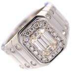 指輪 リング メンズ プラチナ ダイヤモンド Pt950 エメラルドカット 印台リング 幅広 ごつい 太め 30代 40代 50代