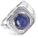 指輪 メンズリング 印台 プラチナ スターサファイア ダイヤモンド Pt950 幅広 カボションカット サファイア 印台リング ごつい 太め