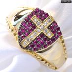 指輪 メンズリング K18 18金 ルビー ダイヤモンド シールド クロス スタッズモチーフ 18k イエローゴールド 男性 刻印入り