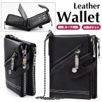 期間限定セール レザー 二つ折り財布 黒 ウォレットチェーン付き ブラック 2つ折り メンズ 財布 ロック パンク マグネットなし ポケット多数