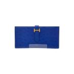 HERMES◆ベアン スフレ オーストリッチ Y刻印/長財布/レザー/BLU/メンズ/G金具