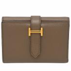 エルメス HERMES ベアン コンビネ 三つ折り 財布 エプソン レザー エタン グレー ベージュ ゴールド金具 U刻印 コンパクト ミニ財布 レディース メンズ